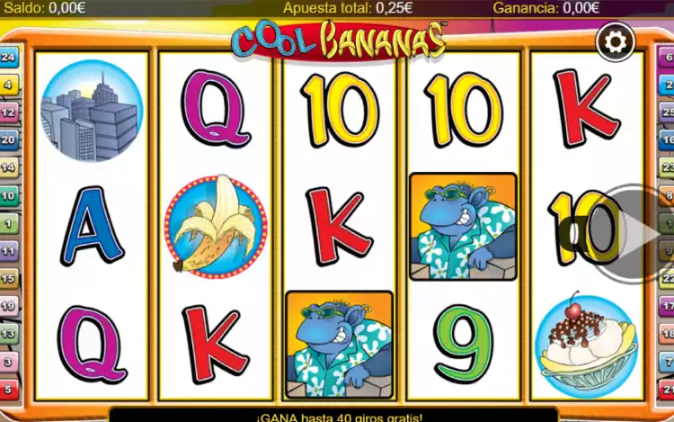 Con 25 líneas de pago y símbolos como plátanos, helados o rascacielos, cada partida tiene su dinámica divertida en los que estos símbolos te pueden acercar a los premios. Su función Wild multiplica las ganancias, y las tiradas gratuitas mantienen una mecánica llena de cosas que van pasando sin parar.